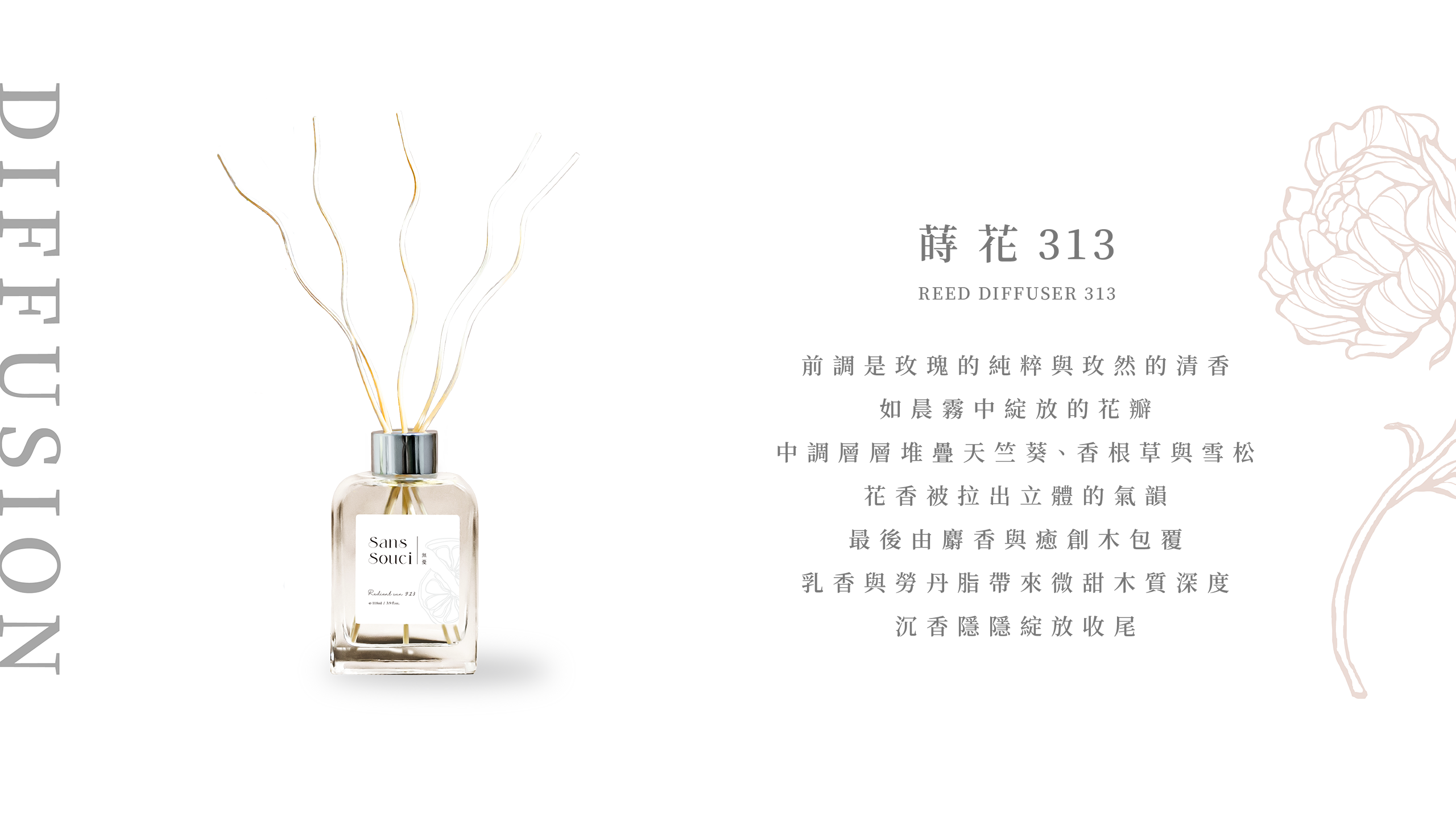 首頁 所有商品 無憂擴香 蒔花 313 🔍 無憂擴香 蒔花 313NT$1,025 原始價格:NT$1,025。NT$999目前價格:NT$999。 容量 118ml |前調|玫瑰、玫然 |中調|天竺葵、香根草、雪松 |後調|麝香、癒創木、乳香、勞丹脂、沉香 無憂擴香 蒔花 313 數量 加入購物車 加購商品 加價購 無憂木槳洗碗海綿單片 (+NT$55) 加價購無憂 禮品袋一只 (+NT$50) 分類: 所有商品, 香氛用品 描述 相關商品 防蚊噴霧 無憂36所有商品, 香氛用品 無憂擴香 庭薰 713所有商品, 香氛用品 無憂 木槳洗碗海綿居家清潔, 所有商品 無憂 油垢清潔劑居家清潔, 所有商品